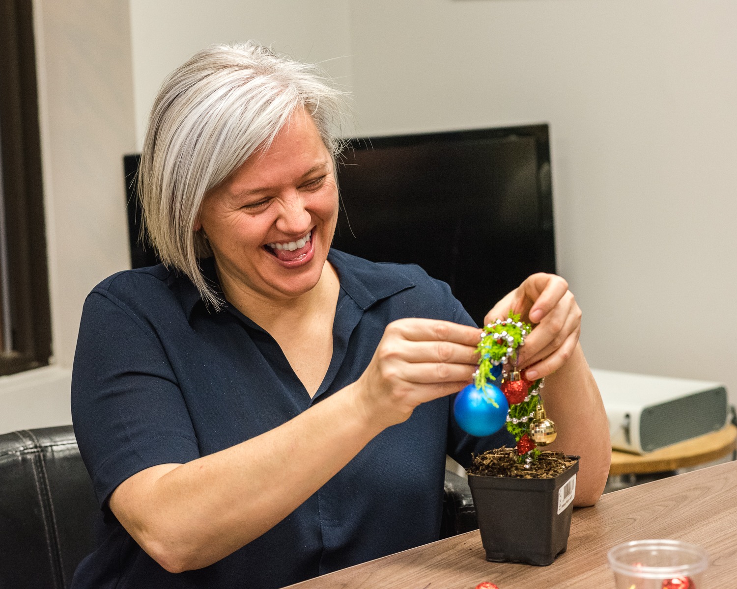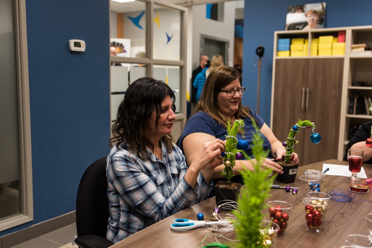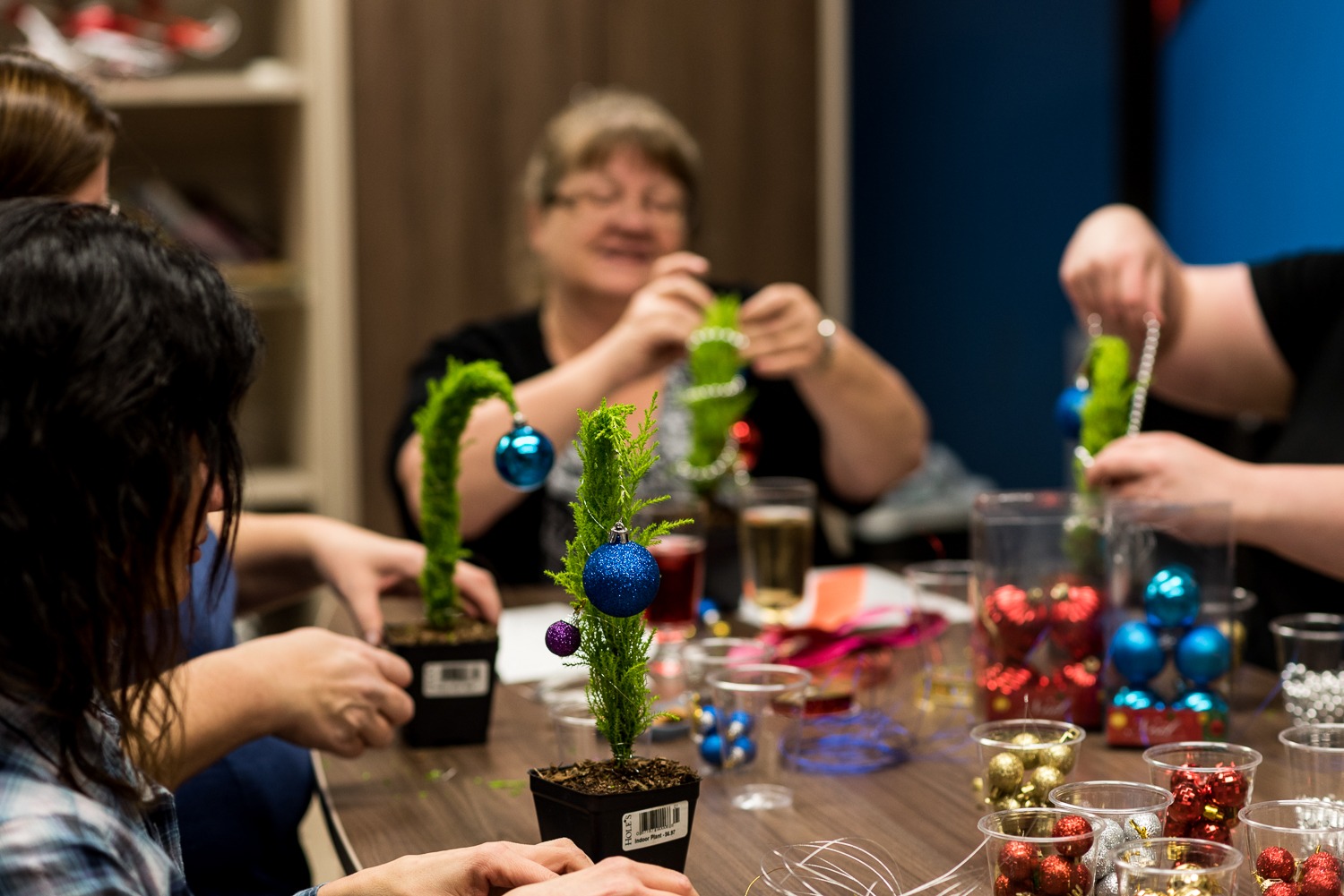With peace of mind knowing that the kids were taken care of – the families participated in a variety of self-care activities. We had massage therapists to help us relax,(courtesy of YEG MobileMassage), hair stylists to make us feel our best (courtesy of the Industry Hair Studio), phenomenal food & drinks to fill our soul (courtesy of AlleyKat Brewery & the catering team at NAIT), and even miniature Grinch Whoville tree workshops!